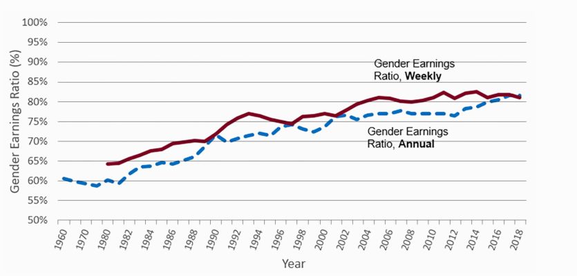 The gender wage gap is unfortunately still very much alive in today’s society. In 1990, women working full-time, year-round earned 30% less than men. As of 2018, this number was still around 20%.